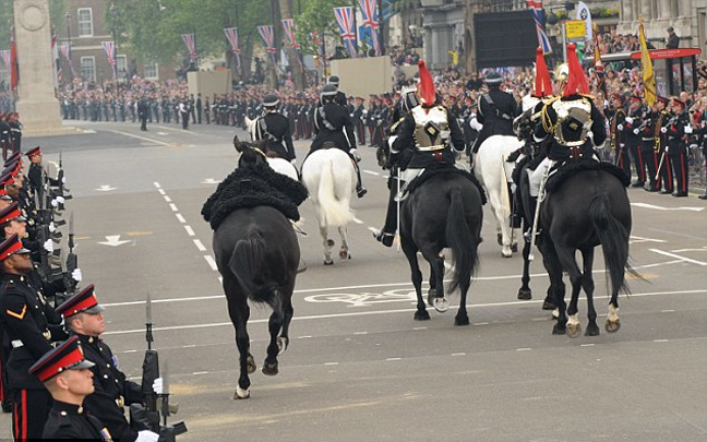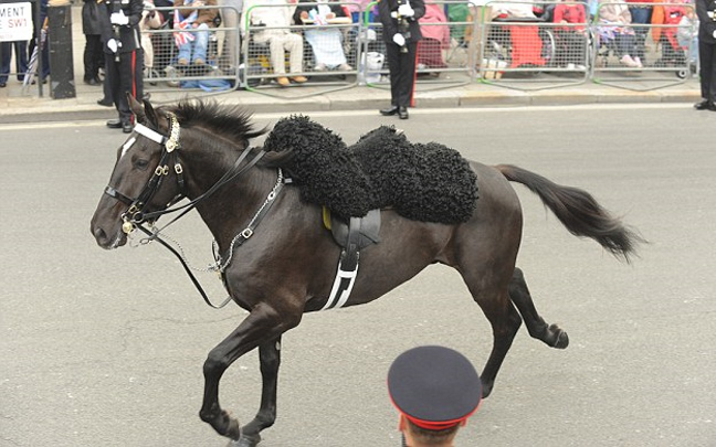 Μπορεί οι VIPs ανά τον κόσμο να έκαναν τα πάντα για να εξασφαλίσουν μία πρόσκληση για το γάμο του αιώνα, όμως ένα άλογο της φρουράς το έσκασε, επειδή φοβήθηκε το πλήθος κόσμου.Σε χρόνο-ρεκόρ η αστυνομία τοποθέτησε φράγματα για να μην πέσει πάνω στον κόσμο, κάτι που δε συνέβη τελικά.