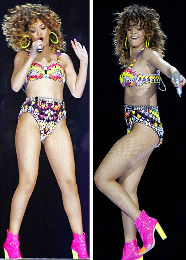 Γνωστή για τις εκκεντρικές της εμφανίσεις, η Rihanna τράβηξε και πάλι... τα βλέμματα στη συναυλία της την περασμένη βδομάδα με τη στιλιστική της επιλογή.